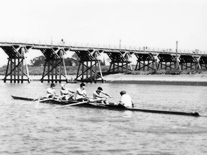 芥川は麦藁帽子にくわえ煙草で写っている。